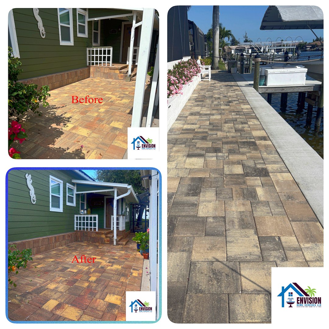 Envision Home Services completed a series of pressure washing and paver sealing projects in Cape Coral, FL to help local homeowners protect and restore their outdoor surfaces. In Southwest Florida, the warm climate, humidity, and frequent rain cause dirt, mold, algae, and stains to build up quickly, so regular maintenance is important for both appearance and longevity.